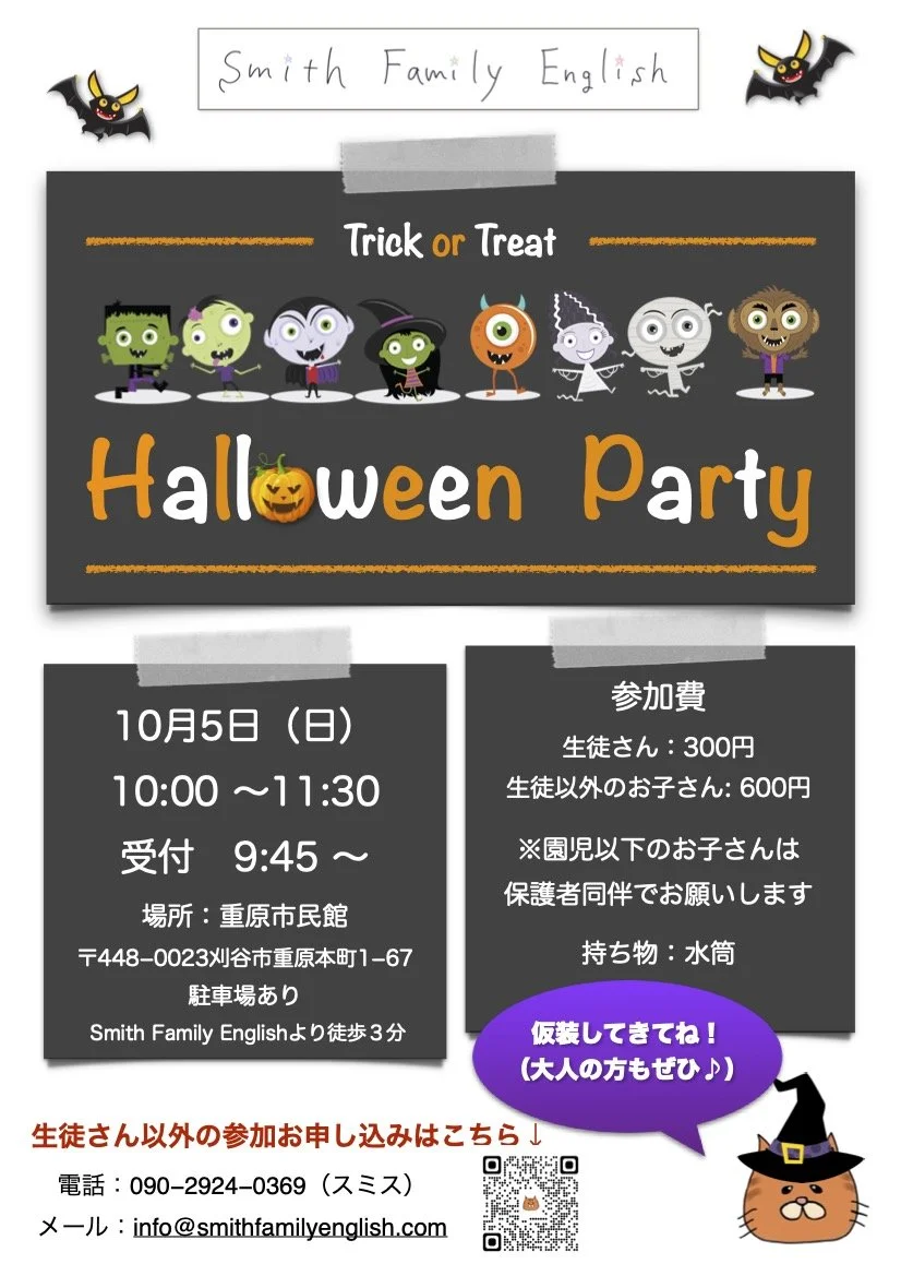 2025年10月5日(日)、刈谷市の重原市民館でハロウィンパーティをします!